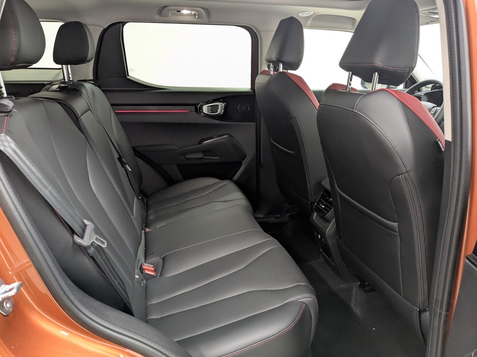 Черный салон с красными вставками (сиденья) из искусственной кожи с перфорацией