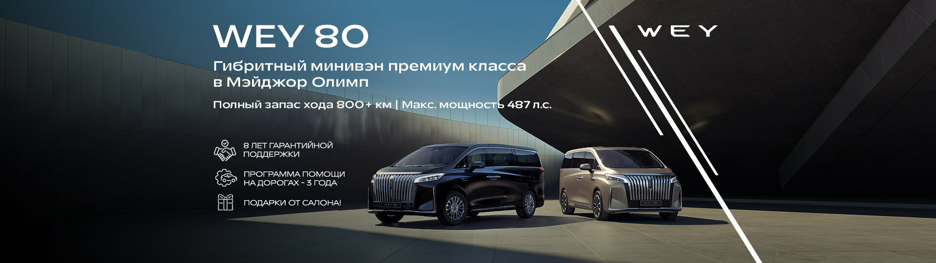 Автомобили WEY, созданные с использованием передовых технических решений и высоких стандартов качества, обеспечивают водителям и пассажирам непревзойденный уровень удобства, безопасности и удовольствия от поездок. Философия бренда WEY заключается в стремлении к идеальности в каждой мелочи.