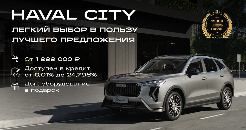 Обеспечение по кредиту - залог приобретаемого автомобиля. Банк вправе отказать в выдаче автокредита без объяснения причин. Условия кредитования актуальны на 01.01.2026г. Подробности уточняйте у официальных дилеров HAVAL CITY/PRO. Актуальный перечень дилеров HAVAL CITY и HAVAL PRO размещен на сайте https://haval.ru/purchase/find-dealer Предложение ограничено, носит информационный характер, не является публичной офертой. Ваш размер платежа будет определен по результатам рассмотрения заявки. Кредит предоставляется Банк ВТБ (ПАО), ОГРН: 1027739609391, адрес регистрации 191144, город федерального значения Санкт-Петербург, пер. Дегтярный, дом 11 литер А. Генеральная лицензия Банка России № 1000.